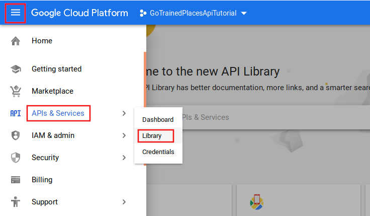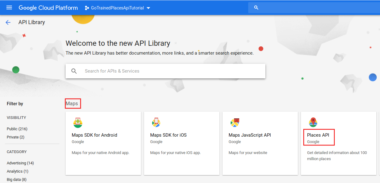 6- From Maps section select “Places API” or search for “Places API” in the search box.