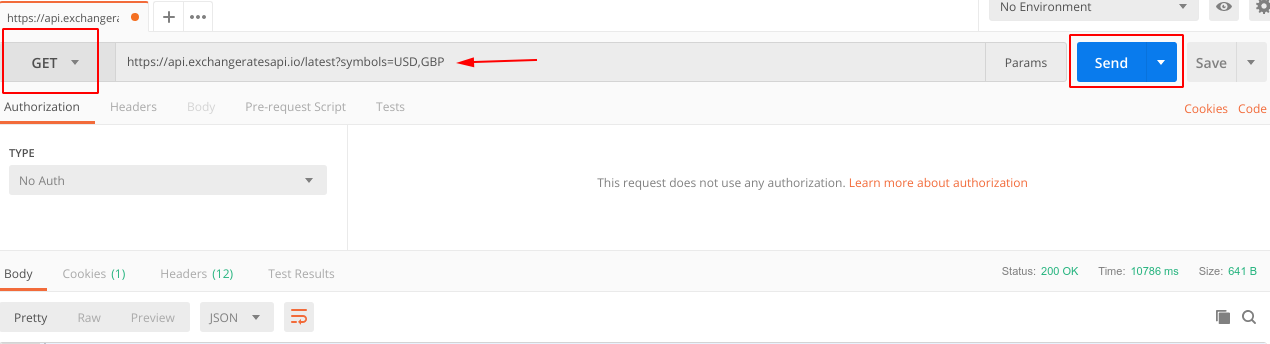 1- Enter https://api.exchangeratesapi.io/latest?symbols=USD,GBP into the URL bar at the top.