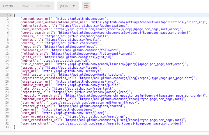2- Now head over to Postman and open a new tab. Paste https://api.github.com into the URL field.